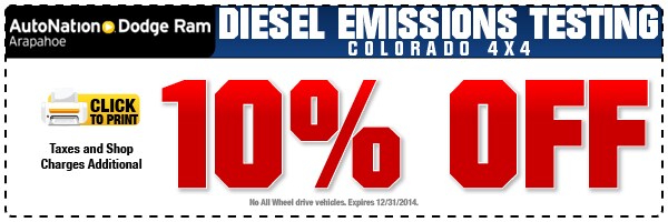 AutoNation Araphaoe is proud to offer a special discount for those that need to have their diesel pass through an emissions test. Come on down to our Centennial CO dealership and get your truck's emissions inspection done.