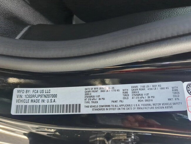 - VIN : 1C6SRFJP9TN207000