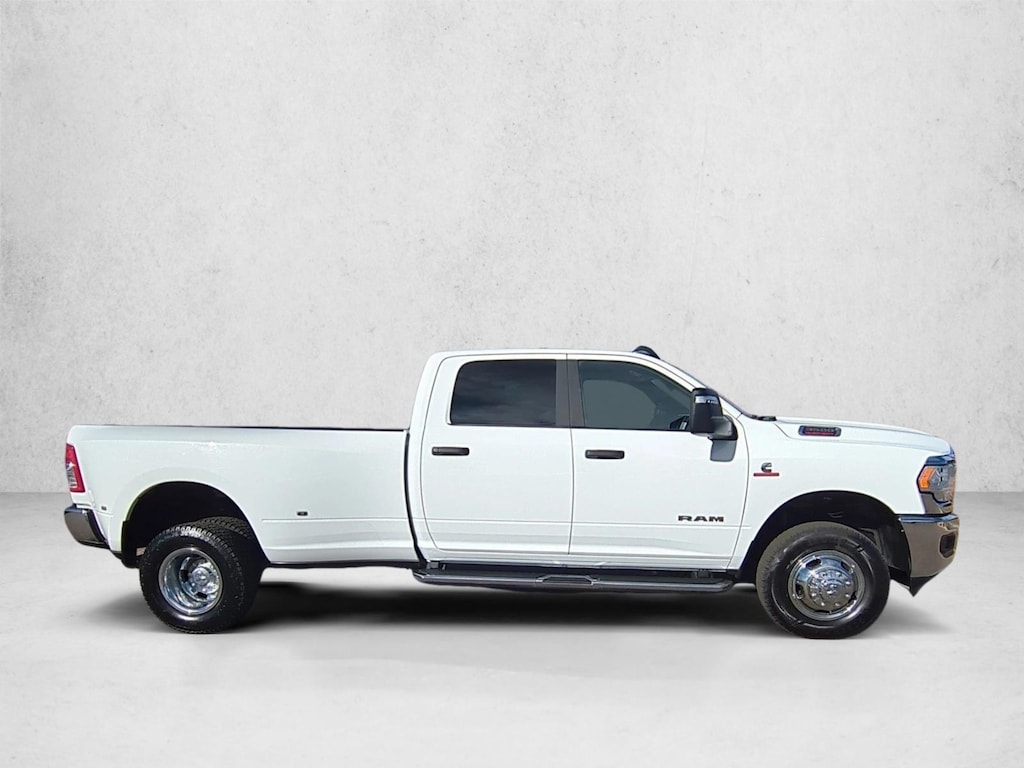 2024 Ram 3500 Dual Rear Wheel Big Horn 4x4 This 2024 Ram 3500 Dually Big Horn 4x4 includes: Level 1 Equipment Group Selectable TireFill Alert, Apple CarPlay, Google Android Auto, Power Heat/Fold/Telescoping Mirrors, Automatic PowerFolding Mirrors, Cloth 40/20/40 Premium Bench Seat, 8Way Power Adjustable Driver Seat, Front Fog Lamps, Forward and Reverse Utility Lights, LeatherWrapped Steering Wheel, 2Way Power Lumbar Adjustable Driver Seat, SiriusXM, 4G LTE WiFi Hot Spot, Ram Connect, Uconnect 5 with 8.4Inch Touch Screen Display, 2ndRow InFloor Storage Bins 6.7L I6 Cummins Turbo Diesel Engine $9,795 Chrome Flat CabLength SideSteps $695 Dual Rear Wheels $1,495 17Inch Steel Spare Wheel, 17Inch x 6.0Inch Steel ChromeClad Wheels, Box and Rear Fender Clearance Lamps, Bright WheelSkins The 2024 Ram 3500 Big Horn dually offers pros like strong towing, a well-designed & spacious interior, excellent tech (Uconnect 5), and powerful engine options , making it great for heavy work Pros Exceptional Towing & Hauling: Class-leading capabilities for serious work. Premium Interior: Well-designed, spacious, comfortable, and quiet cabin, even in Big Horn trim. Advanced Technology: Intuitive Uconnect 5 system with large touchscreen, Apple CarPlay/Android Auto, Alexa, and great camera tech for towing. Powerful Powertrains: Choice of HEMI gas or Cummins diesel engines, offering ample grunt. Styling: Attractive design with several grille options to choose from You deserve a vehicle designed for higher expectations. This Ram 3500 Big Horn Dually delivers with a luxurious, well-appointed interior and world-class engineering. When Ram created this vehicle with 4 wheel drive, they immediately enhanced the performance ability. Easily switch between two and four wheel drive to take advantage of the improved traction. The 2024 Ram exterior is finished in a breathtaking Bright White Clearcoat, while being complemented by such a gorgeous Black interior. This color combination is stunning and absolutely beautiful! You've found the one you've been looking for. Your dream car. Accident or damage reported to Carfax