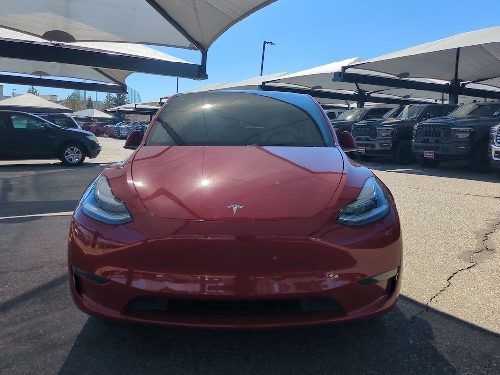 2021 Tesla Model Y Long Range AWD OneOwner Colorado EV, Clean CARFAX, Extra Wheels & Tires Included This 2021 Tesla Model Y Long Range AWD is a wellkept, oneowner Colorado EV offering excellent electric range, versatile cargo space, and the confidence of allwheel drive. With 43,034 miles and a clean CARFAX showing no accidents, no damage, and no structural issues , this Model Y is a premium, highly reliable choice for EV shoppers. [CARFAX Veh...E6MF293340 | PDF] Even better, this Model Y comes with an extra complete set of wheels and tires , offering exceptional yearround versatility for Colorados changing driving conditions. Vehicle Highlights Oneowner Colorado vehicle [CARFAX Veh...E6MF293340 | PDF] Clean CARFAX no accidents or damage reported [CARFAX Veh...E6MF293340 | PDF] 43,034 miles low for a 2021 EV [CARFAX Veh...E6MF293340 | PDF] AllWheel Drive Long Range model for increased traction and maximum battery range Includes an EXTRA set of wheels and tires (great for winter/summer setups) Regularly registered and maintained in Colorado with documented service history [CARFAX Veh...E6MF293340 | PDF] 8year/120,000mile battery & drive unit warranty still active (approx. 76,966 miles / 44 months remaining at last CARFAX update) [CARFAX Veh...E6MF293340 | PDF] CARFAX Buyback Guarantee eligible Long Range Performance The Model Y Long Range variant is known for: Dualmotor AWD for confident traction Impressive driving range (EPA ~326 miles when new) Smooth, quiet electric acceleration Teslas advanced regenerative braking - Service & Maintenance History The CARFAX report shows two documented service visits, including: 4/10/2024 Vehicle serviced at Jiffy Lube in Parker, CO [CARFAX Veh...E6MF293340 | PDF] 4/08/2025 Vehicle serviced at Big O Tires in Parker, CO [CARFAX Veh...E6MF293340 | PDF] Tesla EVs require minimal scheduled maintenance, and battery warranty coverage remains active. Clean Ownership & Title History No structural damage, no airbag deployment, no odometer issues [CARFAX Veh...E6MF293340 | PDF] Single owner from 2021 through 2026 Consistent Colorado registration since new [CARFAX Veh...E6MF293340 | PDF] Premium Tesla Features (Based on Model Y Long Range configuration) Dualmotor allwheel drive Full glass roof 15inch Tesla touchscreen with navigation Premium audio Wireless phone charging Heated front and rear seats Tesla Autopilot driverassistance hardware Power liftgate Bonus: Extra Wheels and Tires Included A full extra set of wheels and tires is included with this Model Yperfect for drivers who want: Dedicated winter tires for snow and ice A separate summer or allseason wheel setup Added convenience and savings over buying a second set later This addition significantly increases yearround safety and value for Colorado driving. Why Buy This Model Y From AutoNation Dodge Ram Arapahoe? Clean, oneowner history No accidents Strong battery warranty still in effect Includes extra wheels/tires Professionally inspected and prepared for sale This is the ideal choice for buyers wanting a safe, efficient, allweather EV with long battery life and excellent resale value.